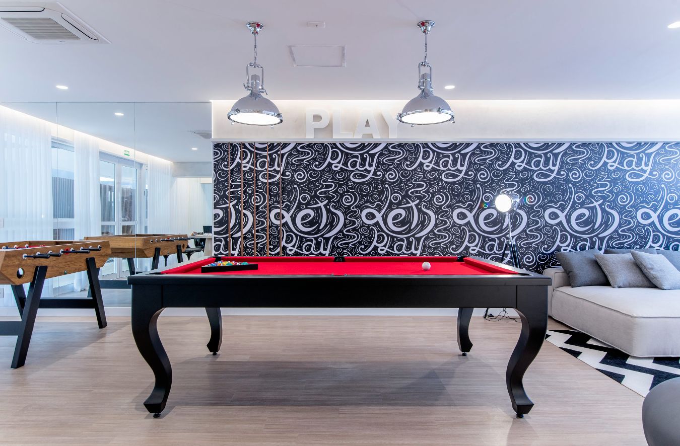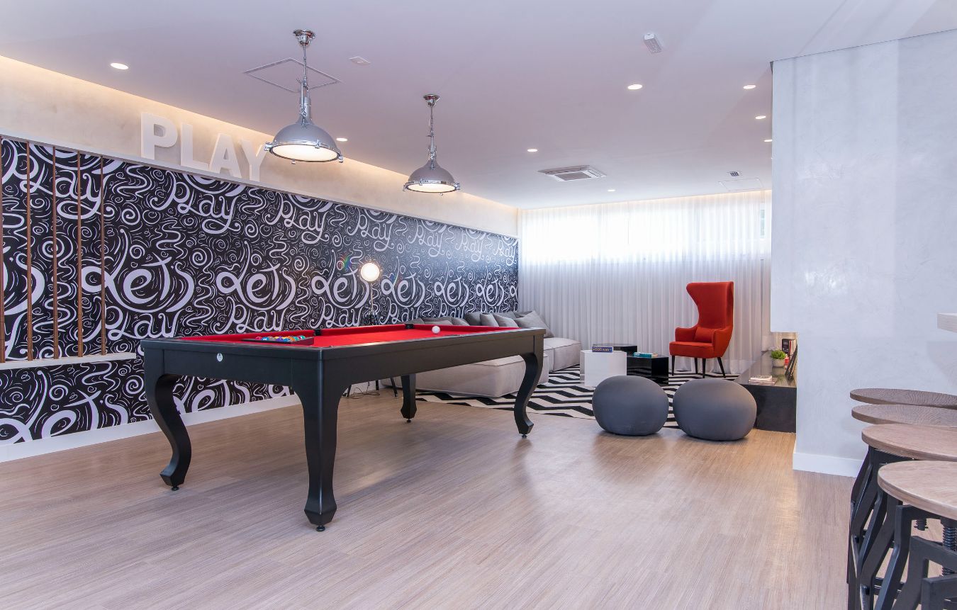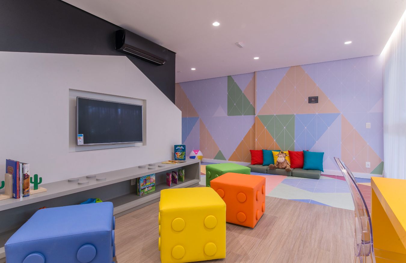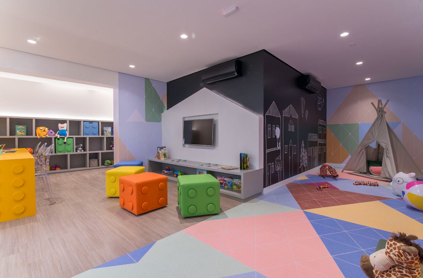 Salão de Jogos; Fitness; Salão de Festas; Brinquedoteca; Piscina; Bicicletário