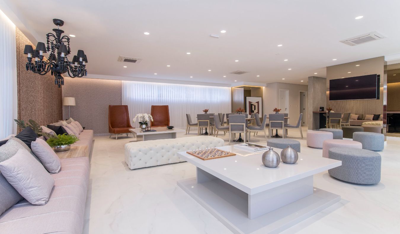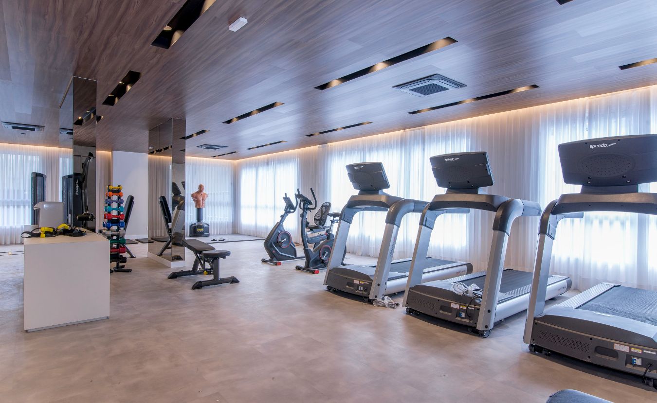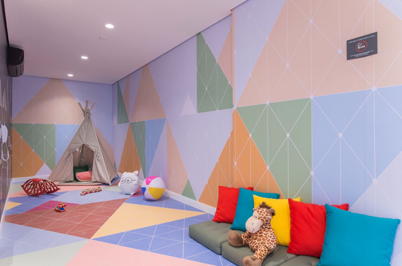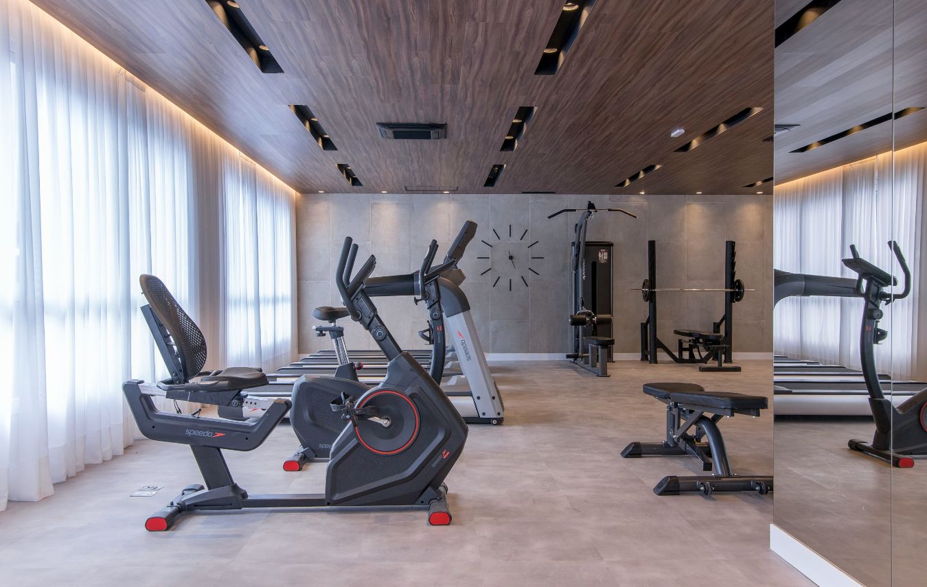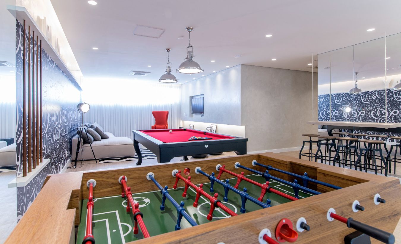 Salão de Jogos; Fitness; Salão de Festas; Brinquedoteca; Piscina; Bicicletário