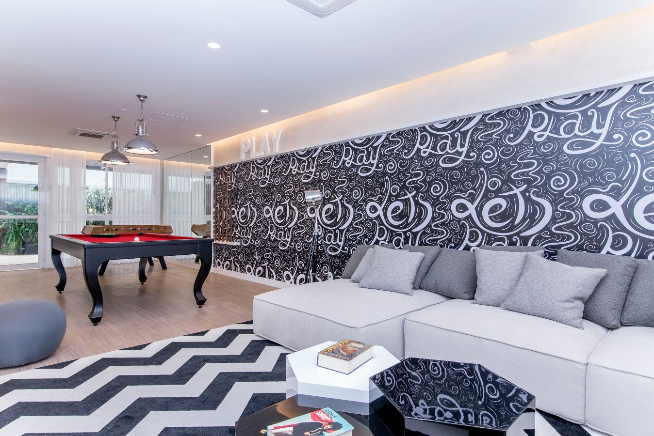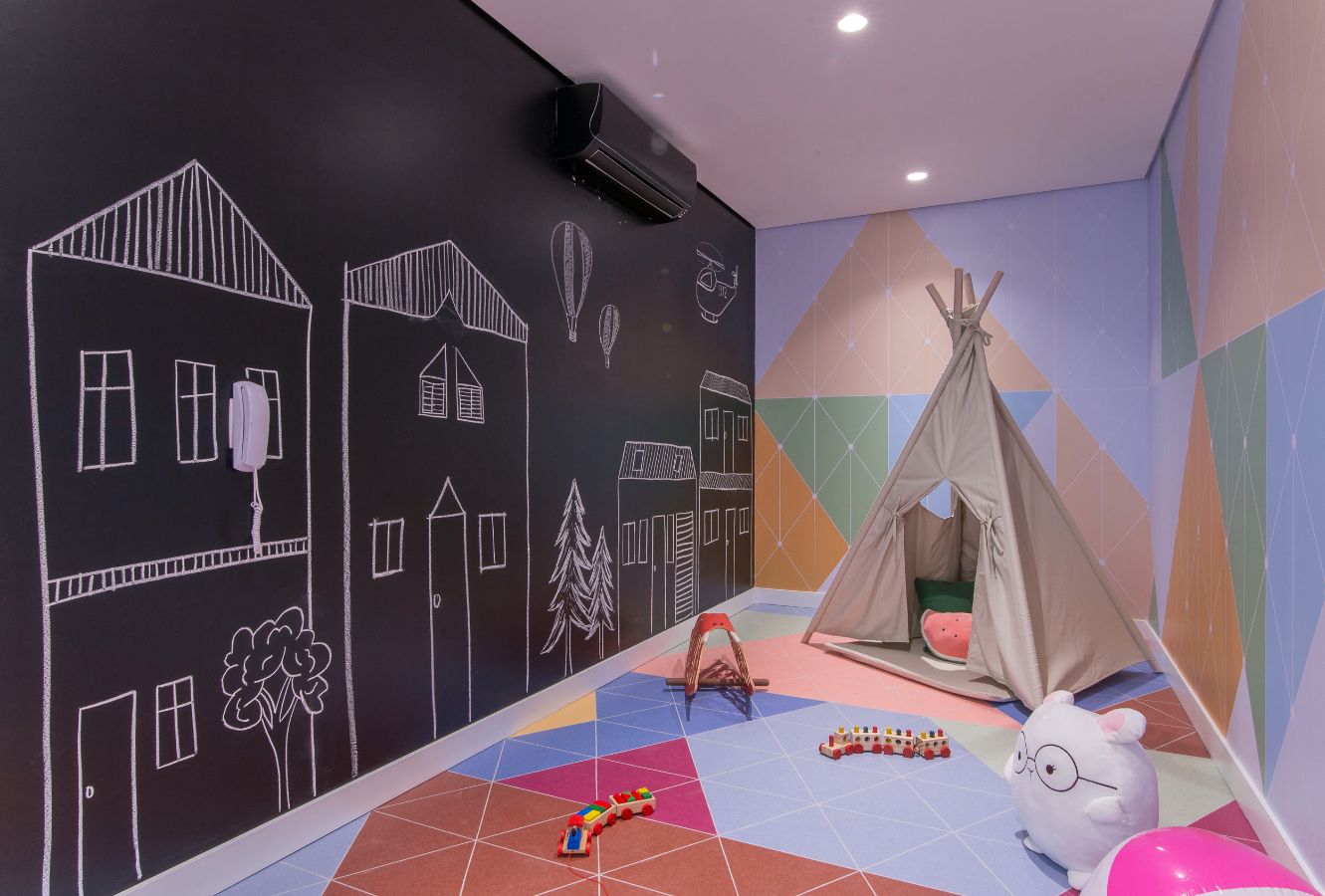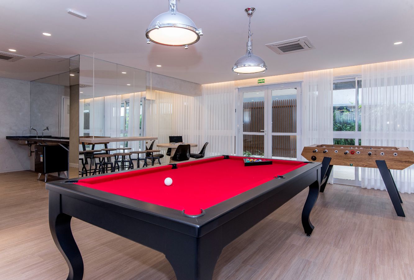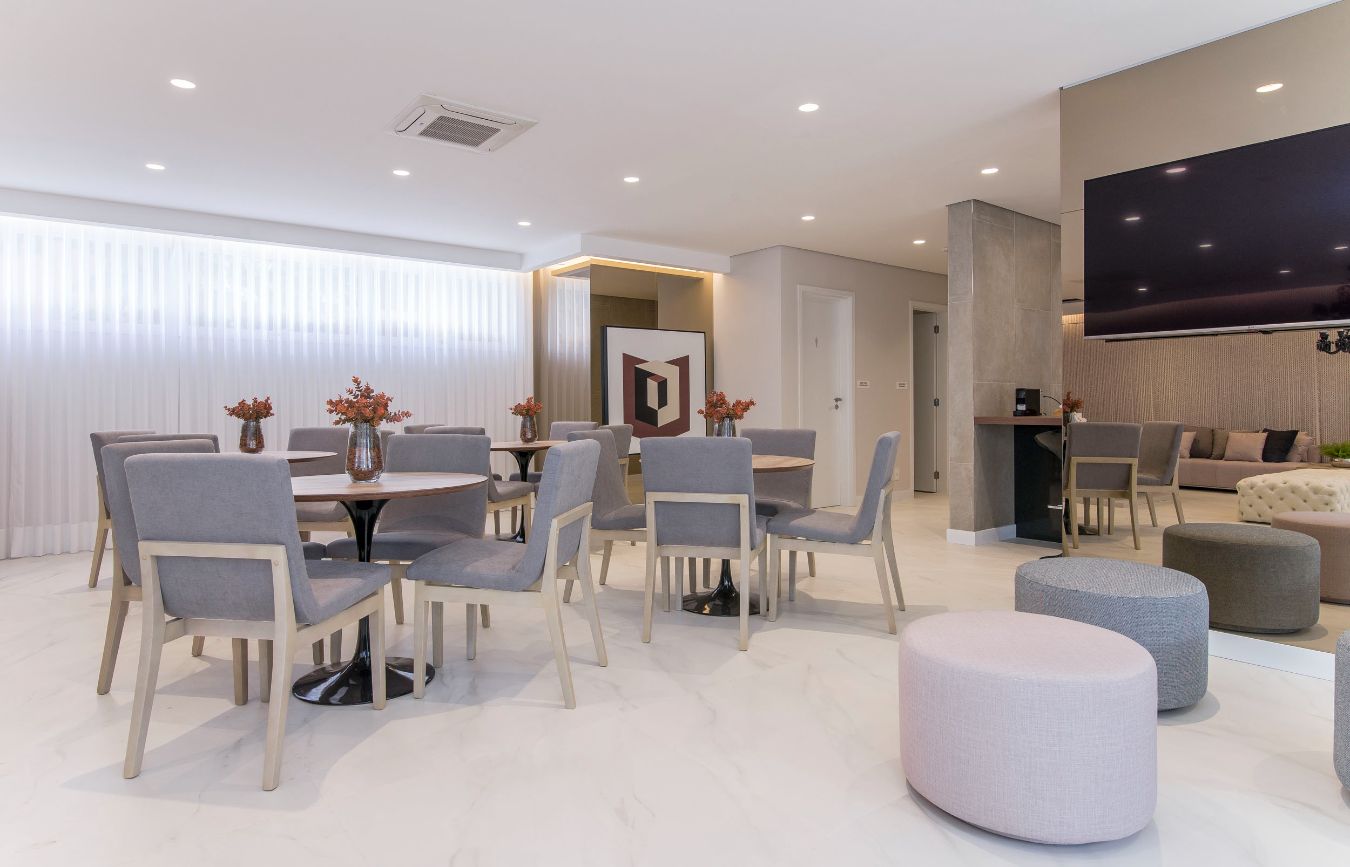 Salão de Jogos; Fitness; Salão de Festas; Brinquedoteca; Piscina; Bicicletário