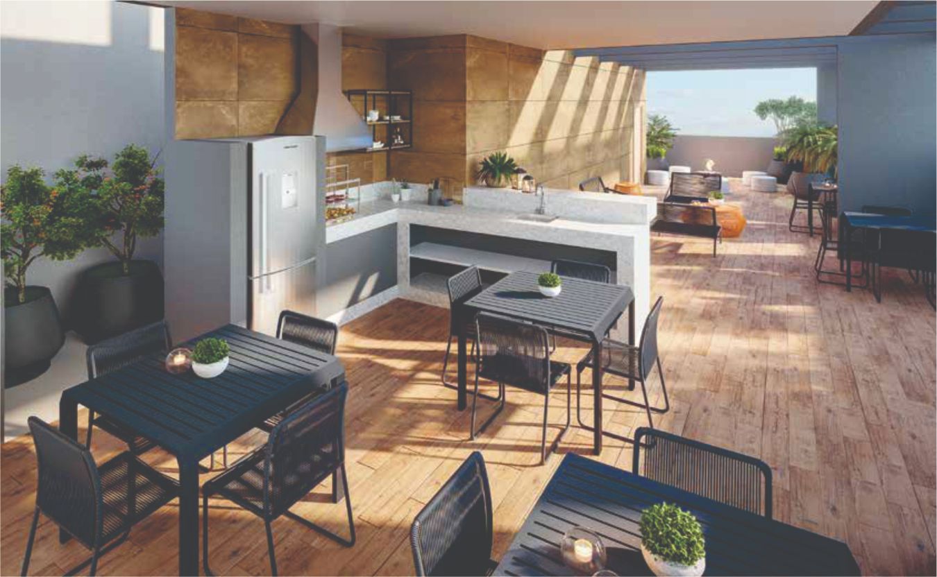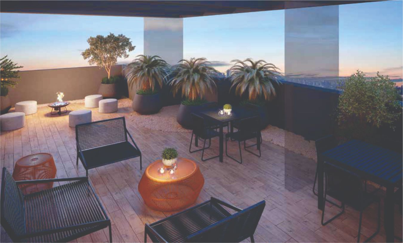 Espaço de entregas; Coliving; Office; Espaço para lavanderia compartilhada; Pet Place; Espaço externo de convivência; Churrasqueira; Lounge externo; Lareira ecológica; Festas com espaço gourmet; Fitness; Piscina; Solarium