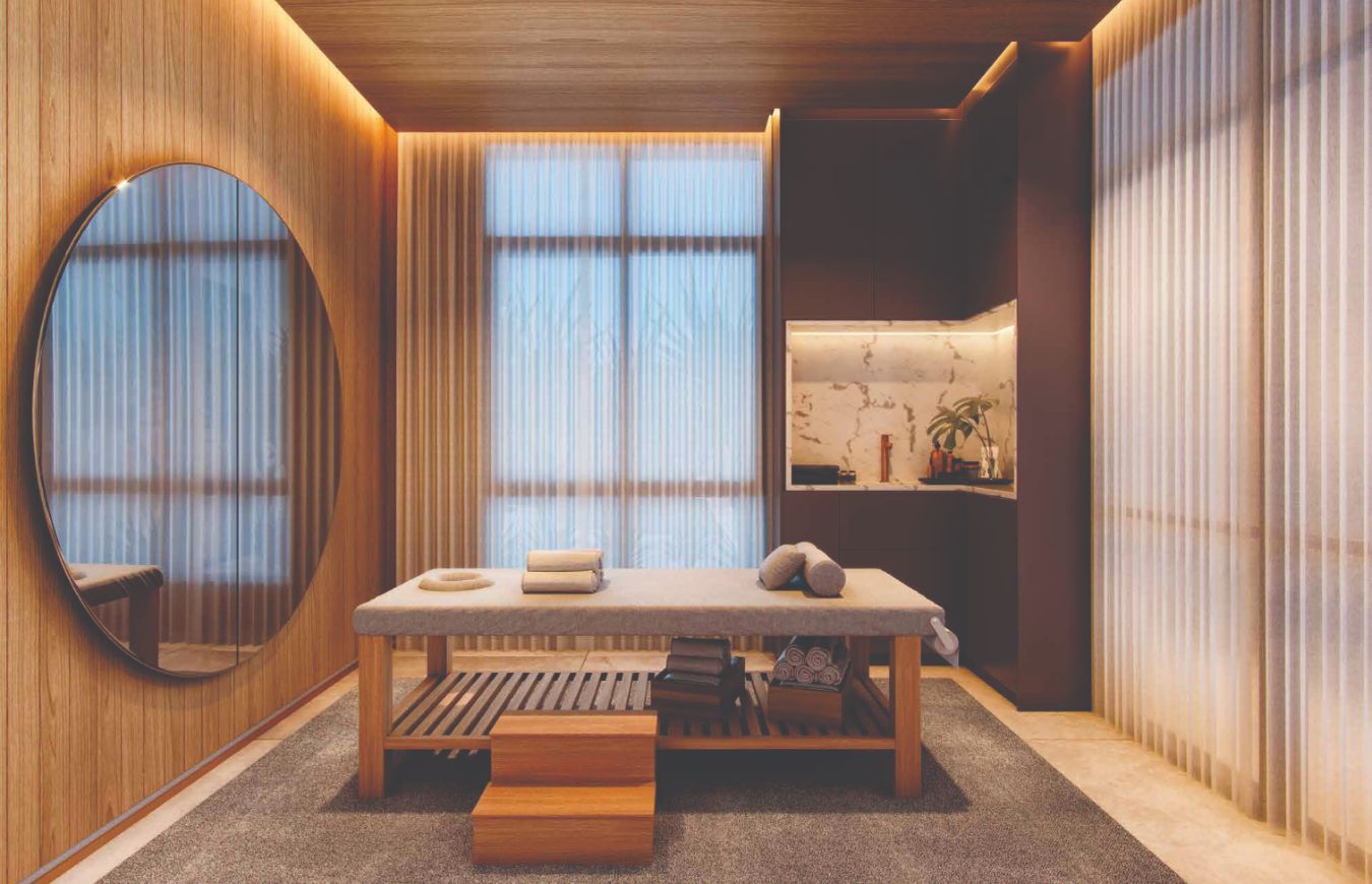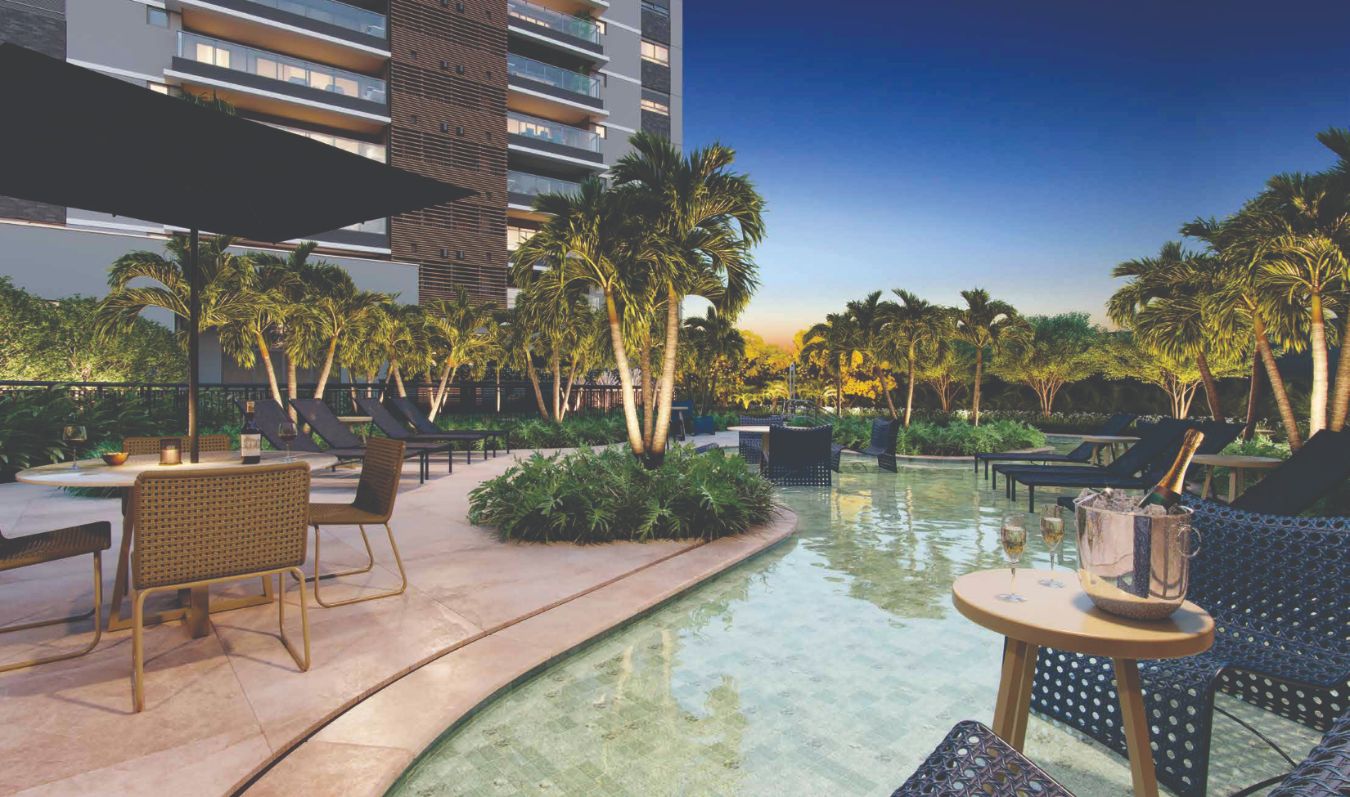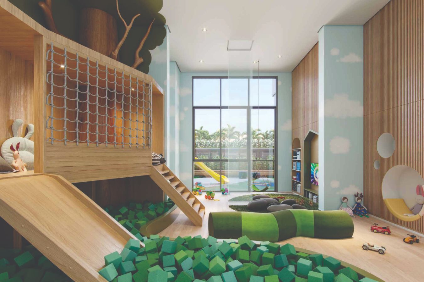 DELIVERY; LOBBY; SALÃO DE FESTAS; BRINQUEDOTECA; LOUNGE; FITNESS; LOUNGE FESTAS; PET PLACE; PLAYGROUND; ESTAR EXTERNO; CHURRASQUEIRA; QUADRA RECREATIVA; SAUNA SECA; – SALA DE MASSAGEM; PISCINA COBERTA DE 25 M; SPA PISCINA COBERTA; BAR DA PISCINA; DECK MOLHADO; PISCINA ADULTO DE 20 M; PISCINA INFANTIL; SOLARIUM