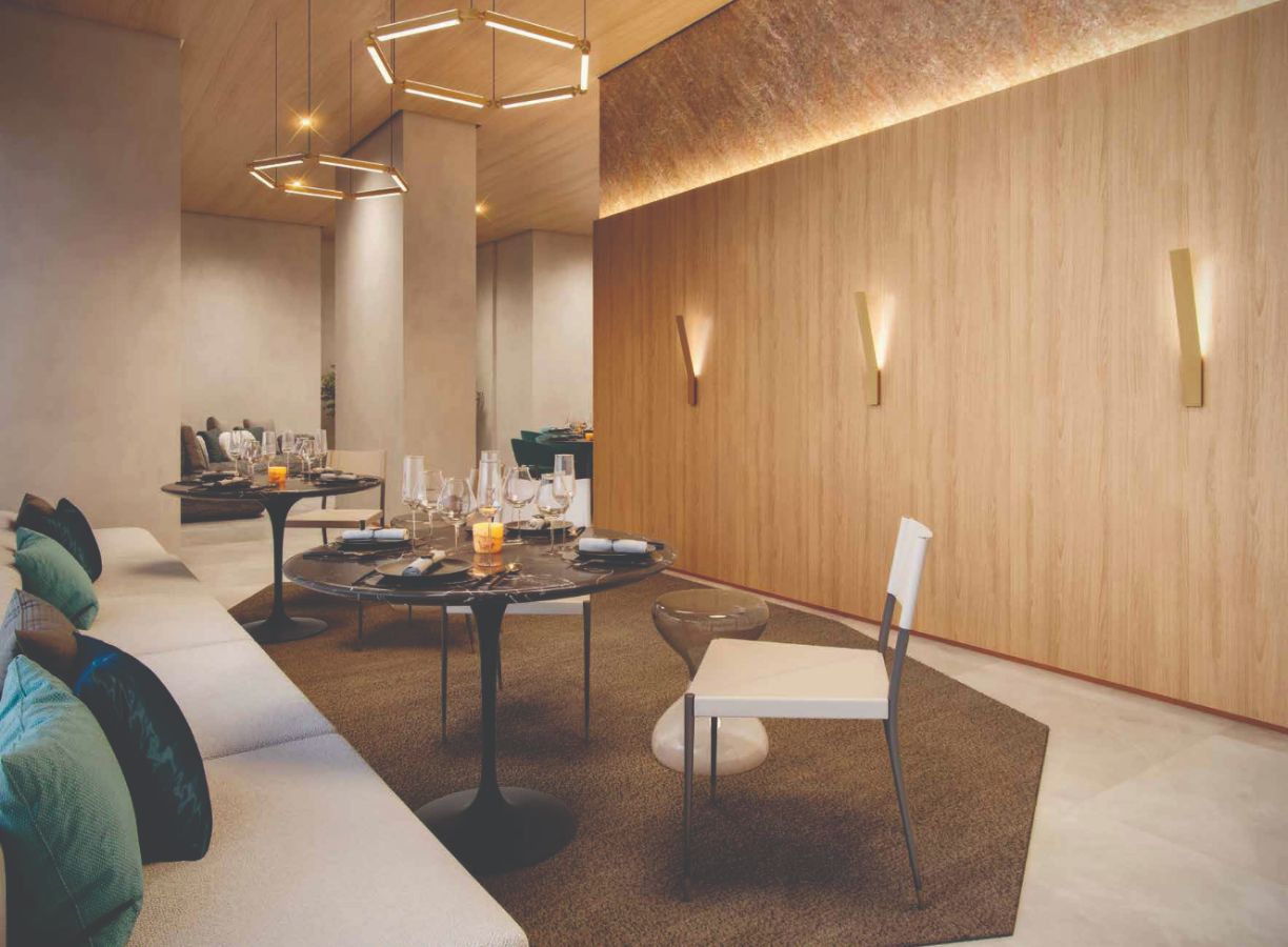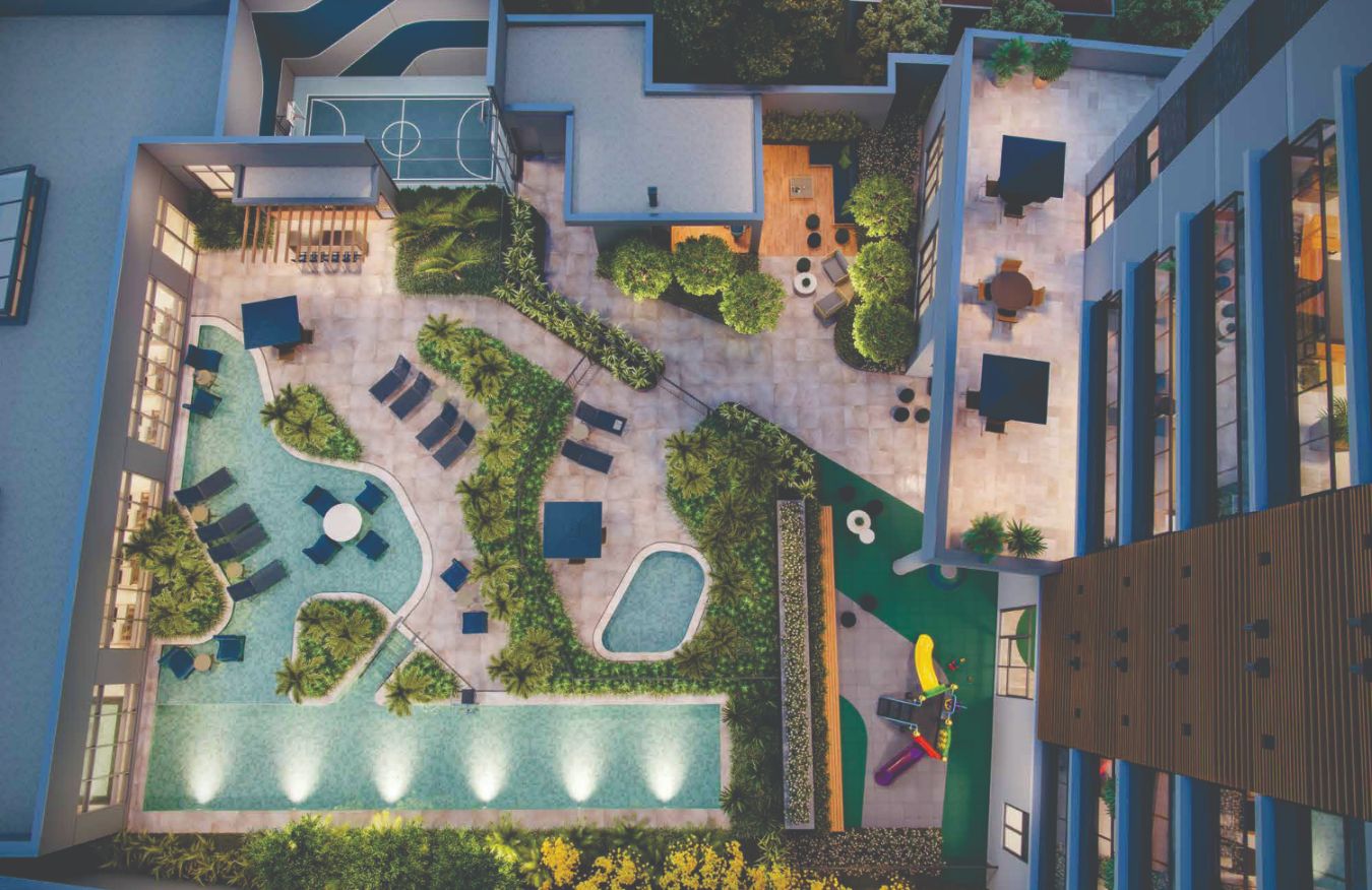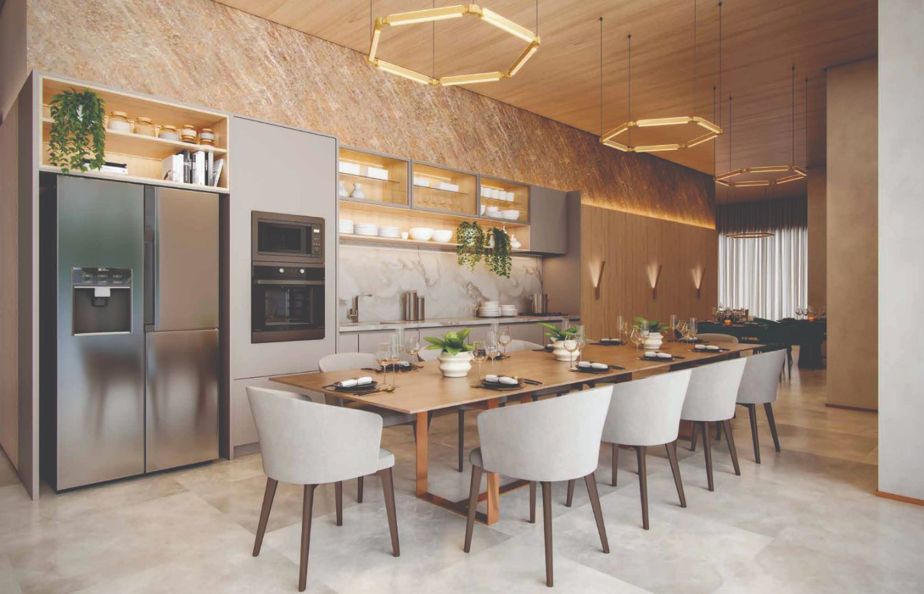 DELIVERY; LOBBY; SALÃO DE FESTAS; BRINQUEDOTECA; LOUNGE; FITNESS; LOUNGE FESTAS; PET PLACE; PLAYGROUND; ESTAR EXTERNO; CHURRASQUEIRA; QUADRA RECREATIVA; SAUNA SECA; – SALA DE MASSAGEM; PISCINA COBERTA DE 25 M; SPA PISCINA COBERTA; BAR DA PISCINA; DECK MOLHADO; PISCINA ADULTO DE 20 M; PISCINA INFANTIL; SOLARIUM